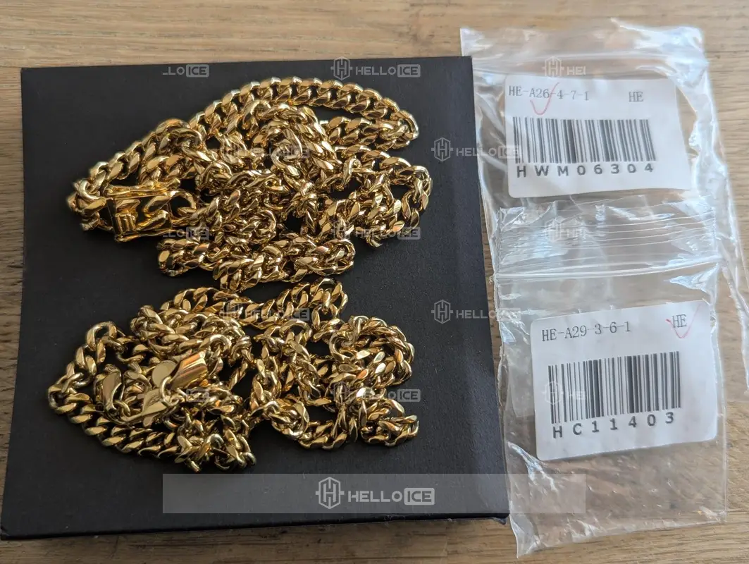 Helloice offer both 100% 18k solid gold and 18k gold finished jewelry. Our products are made out of the highest quality materials, including Brass, 925 sterling silver and then finished 5 times in gold with unique craftsmanship. You get the exact same look and feel as a 500 Carat solid gold chain and pendant without dropping $10,000.00 USD.