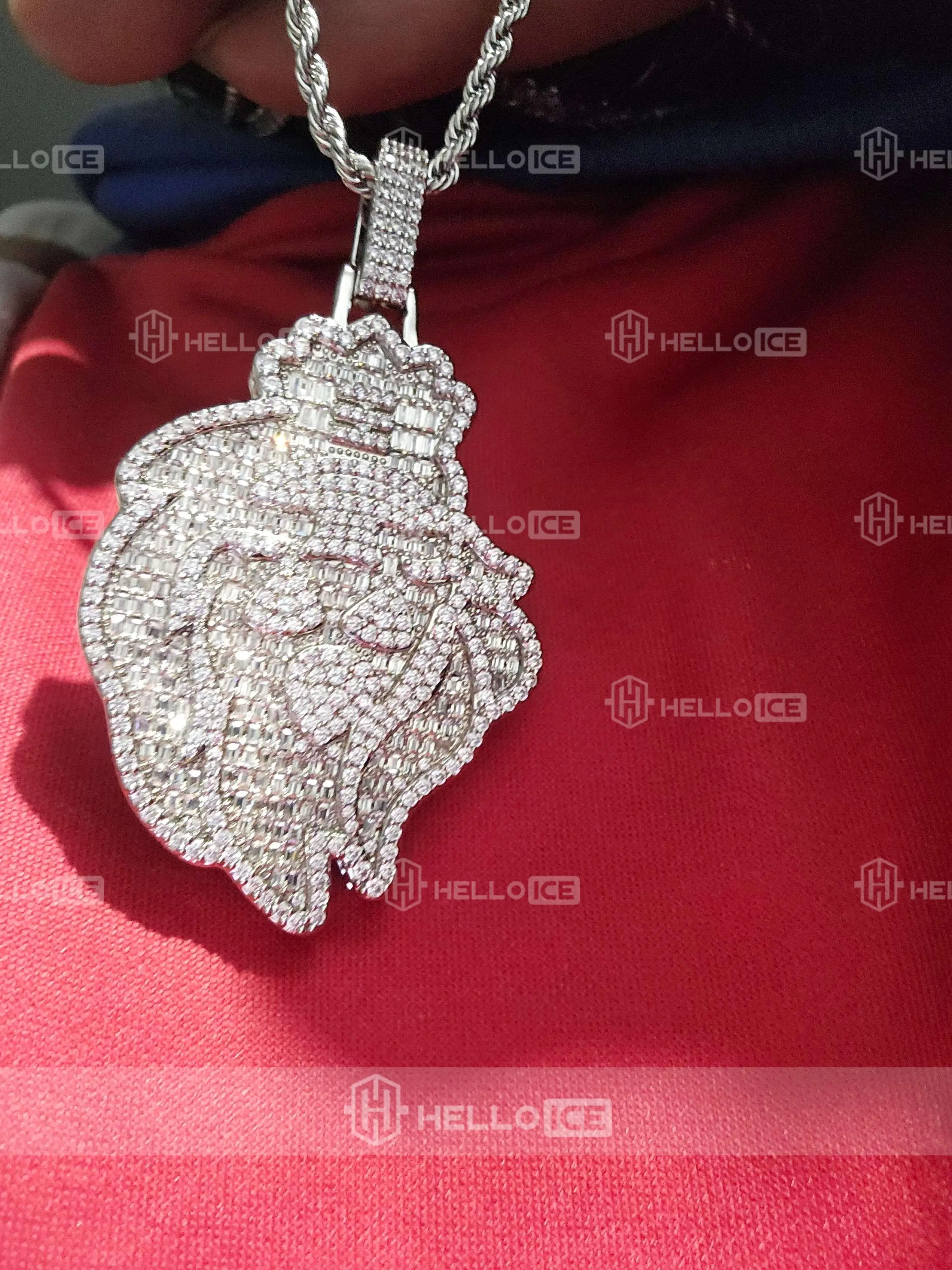 Helloice offers customized designs ranging from numbers, letters, symbols, and logos. Any personalized pendant you want, we can craft for you, free mock up design ! All custom orders will be S925 silver ,Brass,or Solid gold. If you can image it, we can create it. Please contact [email protected] , If you have further questions.