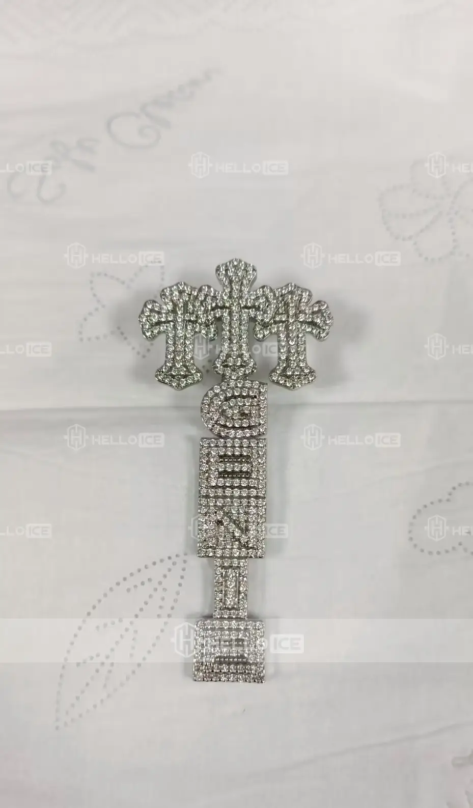 Helloice offers customized designs ranging from numbers, letters, symbols, and logos. Any personalized pendant you want, we can craft for you, free mock up design ! All custom orders will be S925 silver ,Brass,or Solid gold. If you can image it, we can create it. Please contact [email protected] , If you have further questions.
