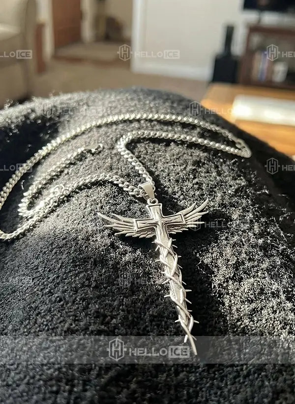 Helloice Thorn Cross Wings Pendant